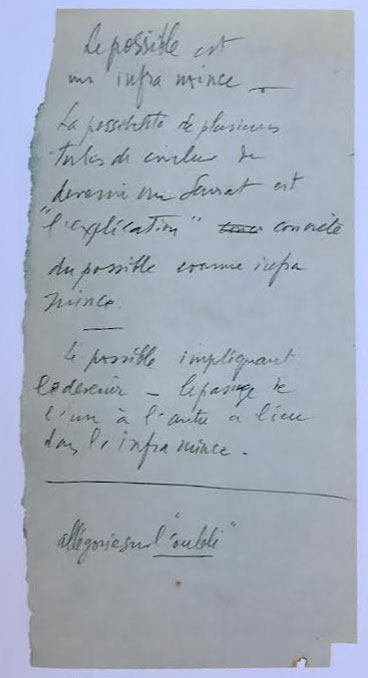Le possible est un infra mince. La possibilité de plusieurs tubes de couleur de devenir un Sourat est "l'explication" concrète du possible comme infra mince. ---------- Le possible impliquant le devenir - le passsage de l'un à l'autre a lieu dans l'infra mince. -------------------------- allégorie sur l' "oubli" ⇒ ENGLISH |