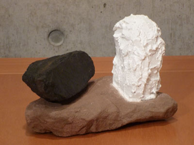 石川虚舟 《 ロンシャンの丘 》 2011 石炭は炭酸ガスを発生し、虚と化す。 漆喰は炭酸ガスを吸収し、時熟する。 ロンシャン礼拝堂参道下の炭坑跡で、石炭を採集。 参道途中で採集した赤い泥岩を、漆喰で塗り固める。 基盤の赤い泥岩は礼拝堂近くで採集。 礼拝堂は天と地、神なるものと死すべきものとの架け橋である。ハイデガーは物としての「橋」について次の様に思考する。 橋はそれ自体の 方法で天と地、神なるものと死すべきものを橋それ自体に集合させる。 MARTIN HEIDEGGER, BAUEN WOHNEN DENKEN, 1951 cf. MARTIN HEIDEGGER, VORTRÄGE UND AUFSÄTZE, S.147, 1954. 秋空に白壁浮かぶ礼拝堂 虚舟 |