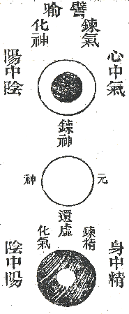 以精化為気、以気化為神、以神化為虚、 故名曰三花聚頂。 精は変化し気となり、気は変化し神となり、 神は変化し虚になり、 それ故に三花聚頂という。 ⇒ 張伯端 『金丹四百字』 序 道生一 一生二 二生三 三生萬物 虚化神 神化気 気化精 精化形 已上謂之順 萬物含三 三帰二 二帰一 錬乎至精 精化気 気化神 已上謂之逆 道は一を、一は二を、二は三を、三は万物を生じる。 虚は神に、神は気に、気は精に、精は身体に化す。 これを順行という。 万物は三を包含し、三は二に、二は一に帰す。 精を錬成すれば、精は気に、気は神に化す。 これを逆行という。 ⇒ 李道純 『中和集』 ⇒ 劉一明 「 順行と逆行 」 |
