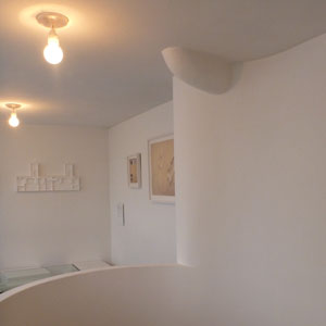 2012年2月23日、シュトゥットガルトのヴァイセンホフ・ジードルンクへ。 1927年、ドイツ工作連盟主催の住宅展が開催された住宅団地。 グロピウス設計の住宅等、当時の作品の約半数は第二次大戦で破壊されたが、ミース・ファンデルローエやJ.J.P.アウトの集合住宅等が健在。 ル・コルビュジェとジャン・ヌレ設計の 《 テラスハウス 》 (1927)が保存され、博物館として展示されている。 博物館の半分(一世帯分)は、ベッドやキッチン等も当時の設備を復元。廊下は肩が触れるほどの狭さで、極めてコンパクトな作り。 左上の写真は、三階の階段部分。彎曲した壁面の裏側に暖炉。天井部分の突起はその排煙用ダクト。 彎曲する壁面と天井の突起は、晩年の作品である《ロンシャン礼拝堂》を窺わせる。 奥の「主人の部屋」の壁面に、テラスハウスの石膏製プランが展示されている。 左下の写真は、シュトゥットガルトの街を展望する、庭の《 肘掛け椅子 》。「打ち放しコンクリート」と鉄筋、アングル材による無骨な組み立てだが、座り心地は良く、まさに「機械」のように、周到な設計が施されている。 ドイツ工作連盟展の成果であるのか、シュトゥットガルトの街は新旧が「対待」し、センスの良い建物が並ぶ歩行者天国がある。ベンツ本社があるためか、スケールが大きく活気がある。大型書店でReclam文庫の『ヘルダーリン詩集』や『ヒュペーリオン』等を購入し、翌日はテュービンゲンへ。 |