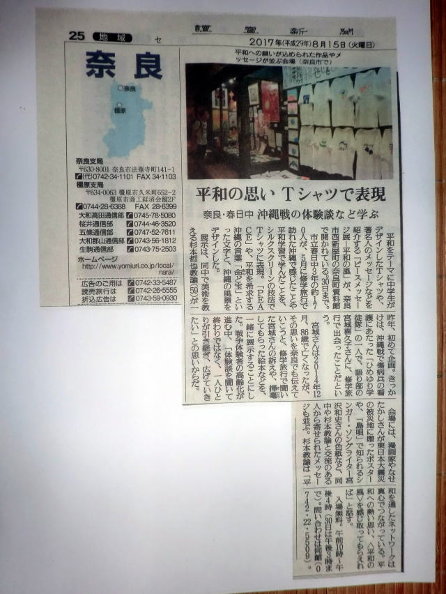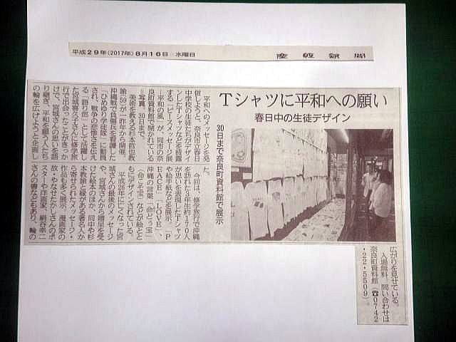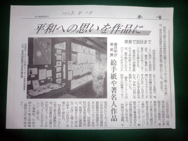 ユーチューブ動画「奈良テレビ…春日中学校『ピースメッセージ展』2017年」