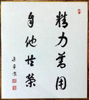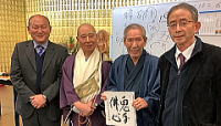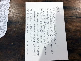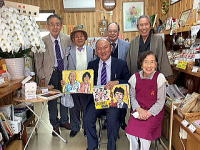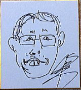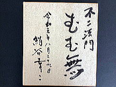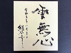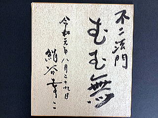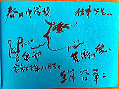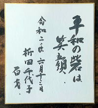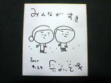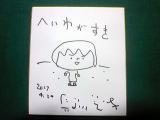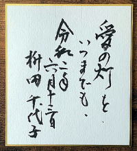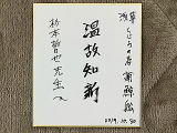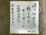 浅草の名店捕鯨船の河野通夫さん(ビートたけしさんの先輩芸人)が作品展ご高覧いただきました。素敵な色紙のメッセージをいただきました。感謝申し上げます。 |