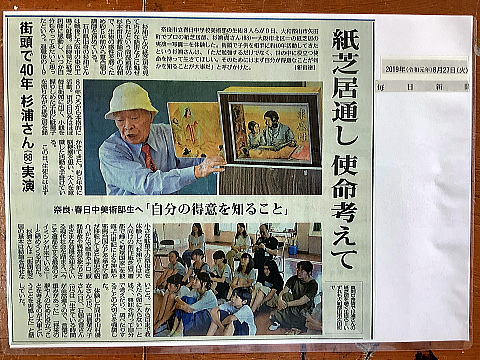 2019. 8. 27↓ 夏の美術部の合宿で杉浦さんが新作紙芝居を披露しました。 |