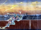 2013年5月2日、うめきた広場、「モアイ像展示、点灯式」がありました。私の水彩画は南三陸町の設置イメージ画として多くの南三陸町の方々に見ていただきました。 |