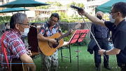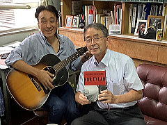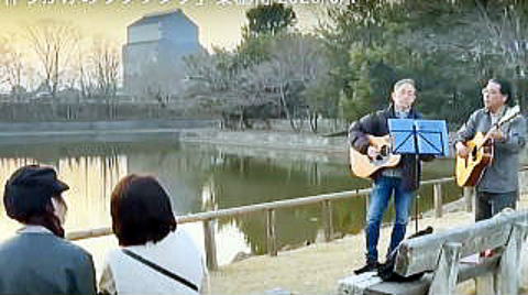 夕暮れの奈良公園ロケ現場で、いでちゃん・てっちゃん歌ギター