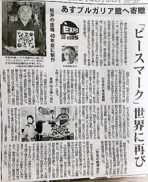 「ワールドピースマーク運動で生徒さんに平和についてご努力をされている様子を知り