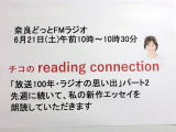 奈良どっとFMラジオ「チコのreading connection」という朗読番組で、 「放送100年、ラジオの思い出」と題した私のエッセイを紹介していただきます。よろしければお聴きください(お願いします)