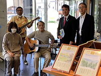 藤本哲人さんが三線訪問され教え子たちに沖縄の民謡などを披露していただきました。