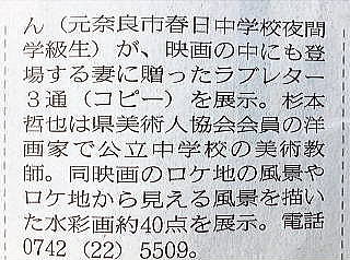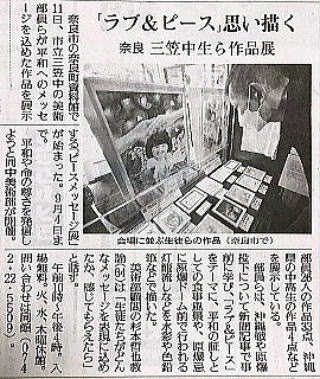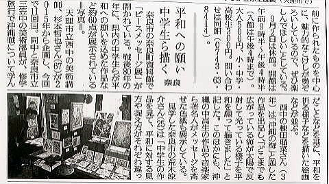 昨日の読売新聞奈良版掲載ピースメッセージ展記事です。ご覧ください。