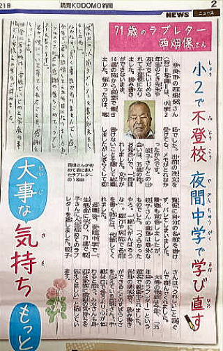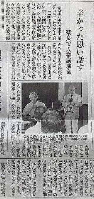 西畑保さん人権講演会記事と紙面同時掲載です。