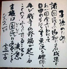 先日の奈良市人権記念集会での「長谷川義史さん絵本ライブ講演」大変よかったです。ピースメッセージ展に展示するメッセージ頂きました。 |