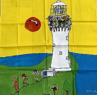 左の「鈴木姫花ちゃんのハンカチ」は、福島県いわき市塩屋崎灯台を描いたものです。8/10、福島県の姫花ちゃんのお父様からメールをいただきピースメッセージ展展示の承諾をいただきましたのでご覧ください。朝日新聞の記事でも紹介されていますのでリンクしておきます。 |