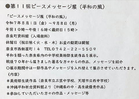奈良でのピースメッセージ展(平和の風)にもご参加されました。