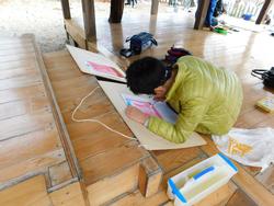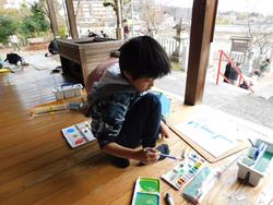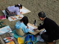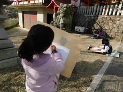 11月30日土曜日に、『放課後子ども教室』の取組としては初めての写生会を行いました。子どもたちの多くが登下校で見ている、そして秋祭りや初詣でもお参りする「あやめ池神社」で、好きなところを切り取って描きました。活動の最後には、ゲストティチャーとしてお招きした杉本先生から、がんばったところや工夫したところをほめていただきました。少し肌寒い日でしたが、参加した子どもたちはとても熱心に取り組んでくれていました。
