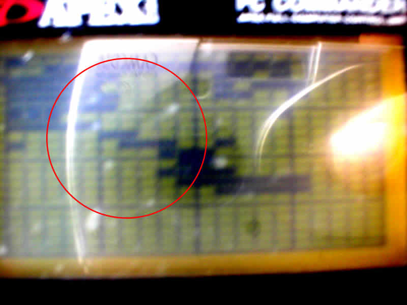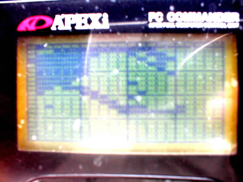 これは私の車に付けているパワーFCのコンピューターのマップチェックモード画面です。 肝心の上の画面ですが、私が普段の町乗り状態の時に3速まで全開走行した時にコンピューターが読んだマップの位置が残されています。 |