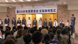 | 特別賞受賞の生徒さんは4月4日シティプラザ大阪での授賞式にご参加下さいました「半切コンクール」「学生書初めコンクール」特別賞作品と「特選」作品は 4月1日から4月5日まで大阪市立美術館 天王寺ギャラリーにて展示されました |