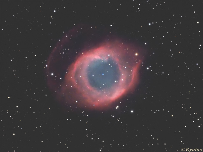 らせん星雲は、夏の終わりから秋の初めにかけて南の空低く見える惑星状星雲です。大変大きいのでその存在は双眼鏡でも確認することができます。大きめの望遠鏡ならぼんやりとドーナツ状に見えてきて大変興味深い天体です。南天が開けたところに行ったら是非観望してみたい天体です。