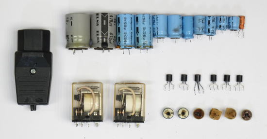 交換部品です。 ☆ 電解コンデンサ−。 ☆ トランジスタ− ☆ リレ− ☆ 半固定VR ☆ 電源プラグ TOP