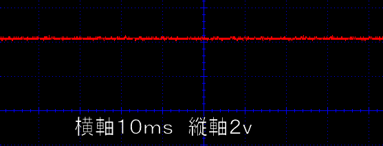 見ました。横軸の目盛は10ms間隔、縦軸の目盛は2V間隔です。 ポートに1を与えれば電気的にはそのポートから5Vが出力されるはずですが約4Vが出力されました。 これはCPUの電源として9Vの乾電池を使っているのですが、この電池の出力が乏しかったためと推測されます。 |
