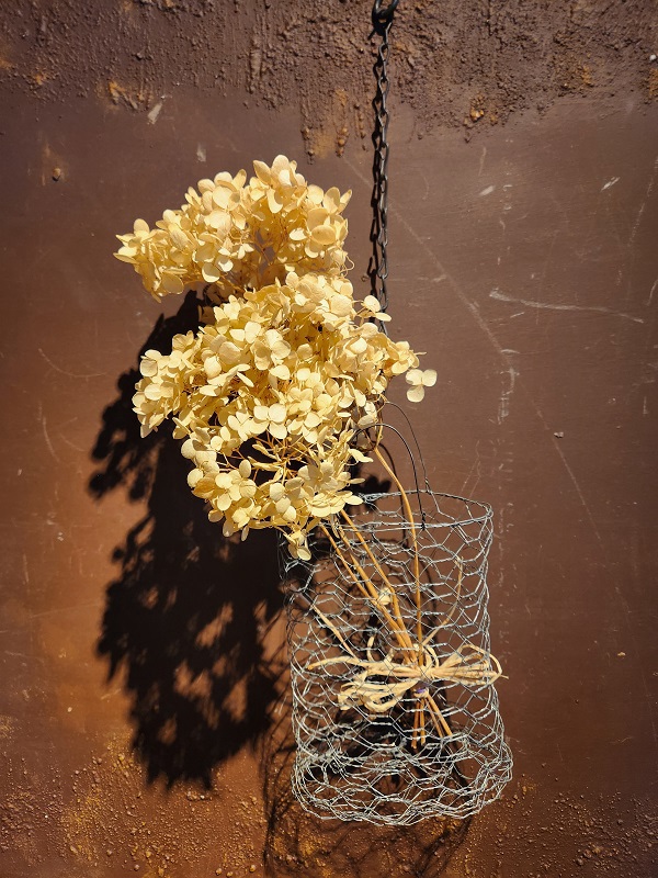 <ワ-クショップと手づくり教室> フリ-で開催するワ-クショップでご希望の日時を打ち合わせ・・・ ①季節の花でスワッグ作り:参加費500円+材料費1,000円 ②リング型モビ-ル作り:参加費500円+材料費1,000円 ③サビ色を再現する塗装:参加費500円+材料費2,000円 ④ワイヤーバスケット作り:参加費500円+材料費1,000円 ⑤ワイヤ-ツリーと照明作り:参加費500円+材料費1,500円 |