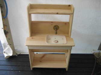 お子様が楽しく遊べる「おままごとキッチン」を作りします 基本価格 ¥28,000(税別) 小さな蛇口とホ−ロ−無地トレ−は無料サ−ビス中(花柄琺瑯トレ−は別売 |