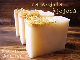 そんなカレンデュラの花をじっくりとオリーブオイルに漬け込み、更に石けんの飾りとして用いてみました。石鹸に入れても変色しないかわいい黄色♪
