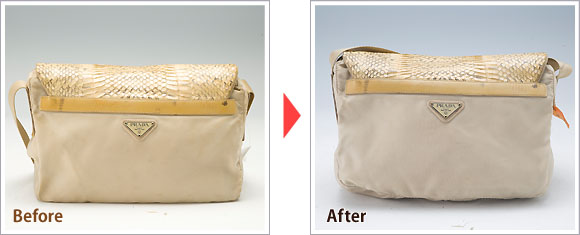 また革と布のコンビのバッグにつきましては革部分のクリーニングは出来ません。