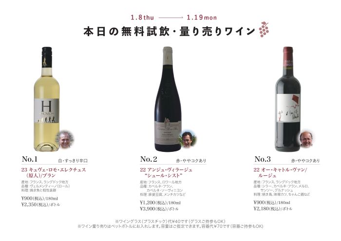 1月8日(木)〜1月19日(月)の量り売りリスト