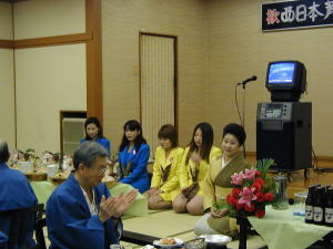 宴会は、水も滴る美人コンパニオンのお酌で大いに盛り上がった。