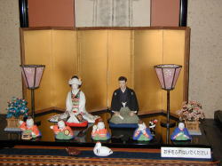 玄関では、紋付姿のお人形がお出迎をしていた。