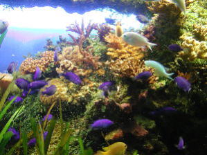 水族館には珍しく素晴らしい水草水槽を発見。魚はカーディナルテトラが少々いたぐらいだが、巨大なアヌビアス・ナナの株など、水草はよく手入れされていた。 |