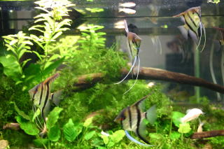 新居に引越ししてきた直後のエンゼルフィッシュたち。 |
