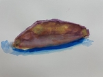 水彩絵の具の特徴を知り、少しだけ意識して思いっきり描けました!みずみずしい、おいしそうなさつまいもです。初めての静物画、3年生の作品です。