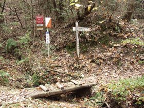 右にとると冷たいきれいな水の沢をわたり細い山道へと入る。