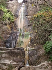 水量こそ少ないが湖南アルプス独特の花崗岩の岩肌を落ちる段瀑である。 |