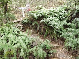 直進は鶏冠山、落ケ滝は右にとる。 |