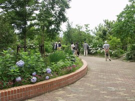 ヨーロッパから集めた「西洋あじさい」と「日本あじさい」の100品種が植栽されている。