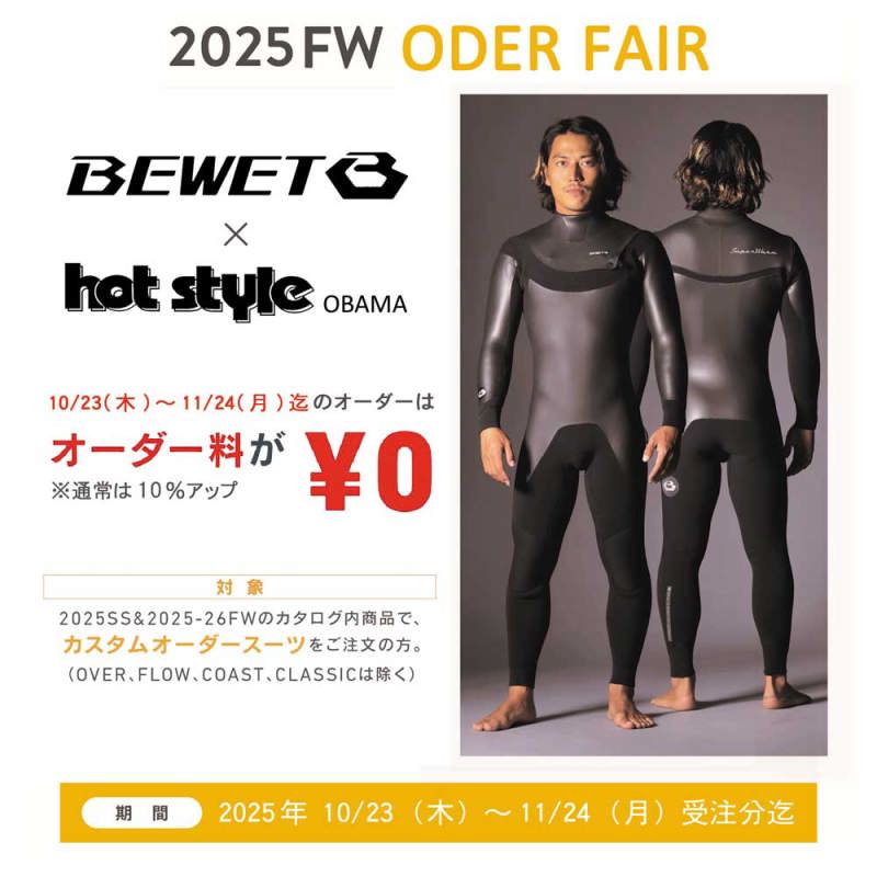 BEWET 2025FW 当店企画ウェットスーツ オーダーフェア ■オーダー受付期間:2025年10月23日(木)~11月24日(月)まで ■フェア内容