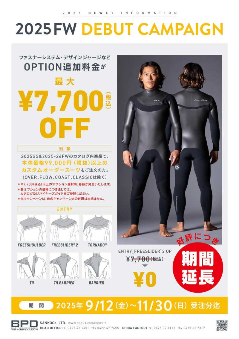 BEWET 2025FW 当店企画ウェットスーツ オーダーフェア