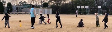 | プレイリーダーより 寒さが一段と身に染みる季節ですが、1月の初回の遊ぼう会には58人の参加がありました。サッカーが上手なボランティアさんが参加され、子どもたちとサッカーの試合をしてくださいました。「パスパス」「ゴールや!」、ゴールが決まれば「やった~!」と大きな歓声が起こります。走り回り、体がだんだん温まってきたら上着を脱いで遊んでいて、とっても楽しそうでした。 2月も体調を崩さないように気をつけて、遊ぼう会で元気いっぱいに遊びましょうね。