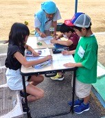 | プレイリーダーより 「もう少し遊びたかった~」ドミノや塗り絵などを楽しんでいた子どもたちから声が上がります。PTA会議室で開催する日は、いつもより1時間早く終了するので遊び足りないようです。また遊ぼうね、と声をかけながら、みんなで片づけ、ボランティアの方に児童玄関まで付き添っていただいて帰ります。これから暑い日は水遊びをすることもあります。お楽しみに! ![]() |