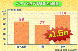 バナナを早食いしたときと、ゆっくり咀嚼したときの比較では、