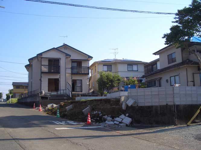 」(昔の岸)の上に築かれた擁壁の倒壊