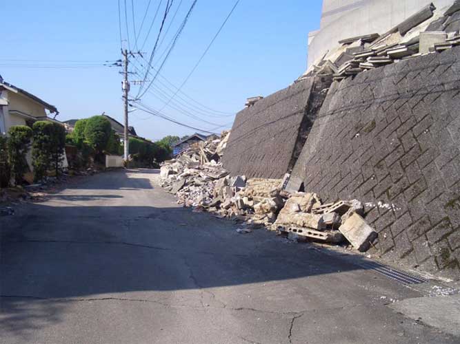 崩落した擁壁の破片
