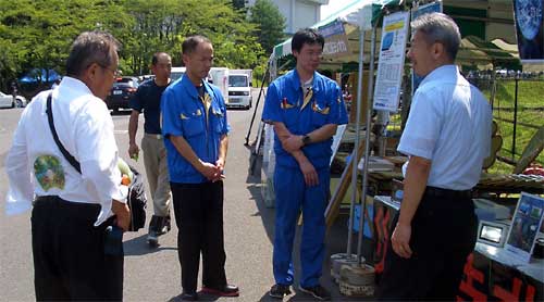 消防団OBに「電動自転車蓄電池活用のLED照明」を説明