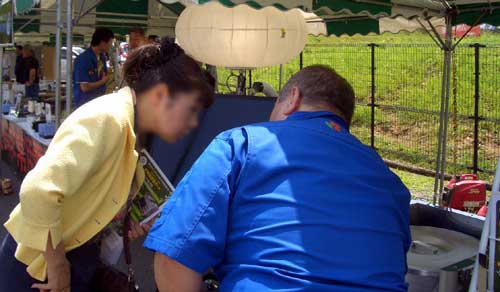 行政関係者が「災害用炊き出しユニット」に関して、熱心に質問