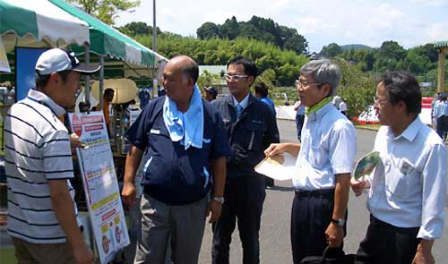 行政関係者らが「逆浸透膜浄水器」の説明に聞き入る