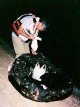 同行のM夫とギル番長の経験者二人が私の分もやってくれて、私はというと灯りで手元を照らす役目。