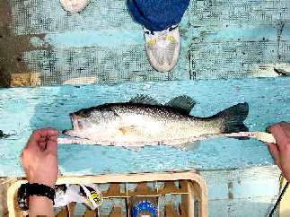 ヨットハーバーで、繋留中のヨットの回りを攻める。ギル番長のテキサスリグに待望のアタリ。キャッチしてメジャーをあてると、40センチジャスト。しかし、ちょっとやせていた。