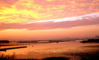 湾内は、ちょっと風があるのかな。でも、水面は鏡のようです。